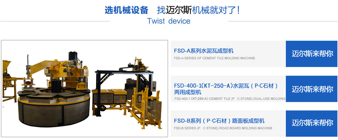 常熟市邁爾斯機(jī)械有限公司是一家集研發(fā)、生產(chǎn)、銷(xiāo)售于一體的建材機(jī)械高科技企業(yè),其前身為2011年注冊(cè)創(chuàng)辦的“常熟市虞山鎮(zhèn)豐順達(dá)機(jī)械配件廠”,經(jīng)過(guò)多年的努力,于2017年注冊(cè)成立“常熟市邁爾斯機(jī)械有限公司”,專(zhuān)業(yè)生產(chǎn)模壓水泥彩瓦機(jī)、P.C石材機(jī)、轉(zhuǎn)盤(pán)式成型機(jī)、彩色路面磚機(jī)等綠色建材設(shè)備。公司以市場(chǎng)為龍頭,以技術(shù)為導(dǎo)向,開(kāi)發(fā)了系列化、標(biāo)準(zhǔn)化的適銷(xiāo)對(duì)路的機(jī)械產(chǎn)品,并且注冊(cè)了多項(xiàng)國(guó)家專(zhuān)利技術(shù),銷(xiāo)售范圍覆蓋全國(guó),并且出口越南、老撾等東南亞和其它國(guó)家。